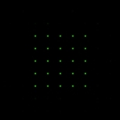 均勻分束或用戶自定義能量分布,最高可實現20*20分束,右圖為5*5分束的設計實例。